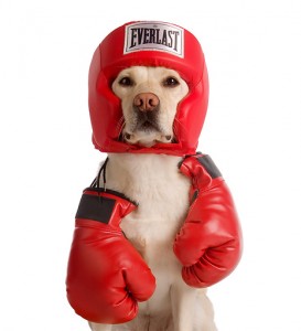 Cute dog in full boxing gear, celebrating day 26th December