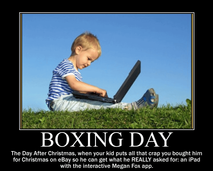 Funny Boxing Day is the day after Christmas when your kids put all that crap