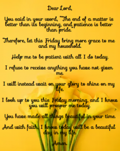 It’s Friday! That means the week is coming to a close and weekend near. And you may be wondering about what and how to write some wonderful Friday morning prayers for your lovers, friends and family members too, but you don’t know where to start.