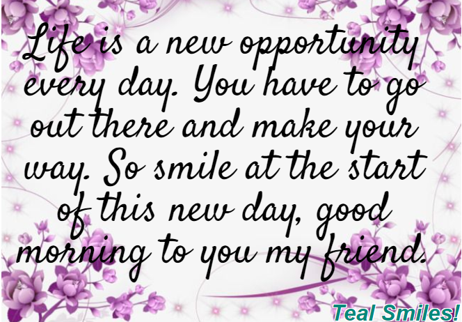 Life is a new opportunity every day. You have to go out there and make your way. So smile at the start of this new day, good morning to you my friend.
